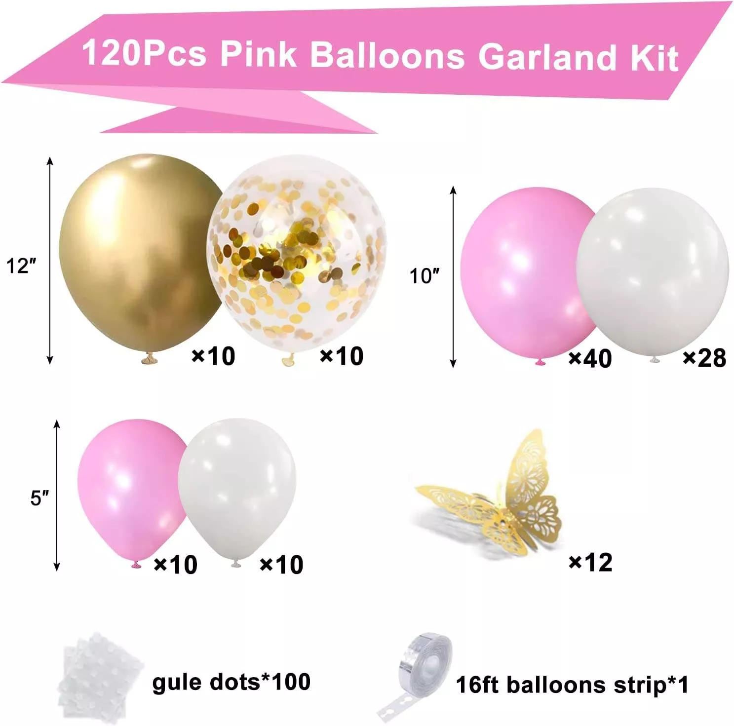 Arcada Baloane Perlate Cu Fluturasi 108 Piese