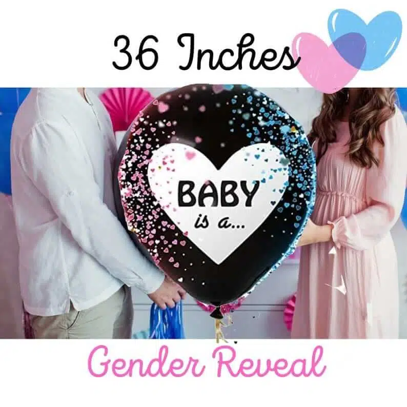 Balon latex 90 cm pentru aflarea sexului nou nascutilor si petrecerea de Baby Shower, imprimat cu inima si text „BABY is a…”