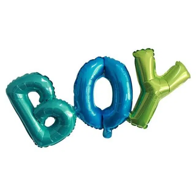 Balon folie pentru petreceri sub forma litere ce formeaza cuvantul BOY, ideal pentru botez sau petreceri