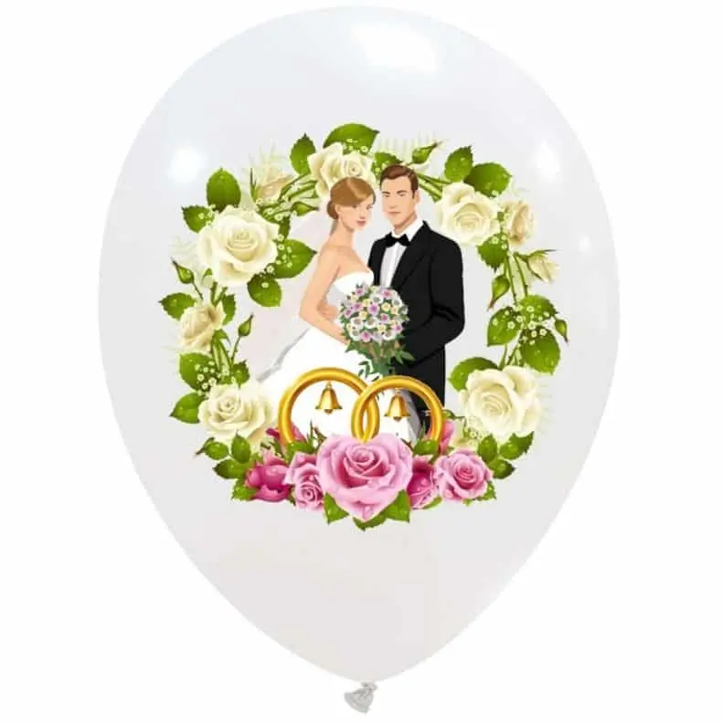 Set 10 Baloane Albe Cu Imprimeu Pentru Nunta