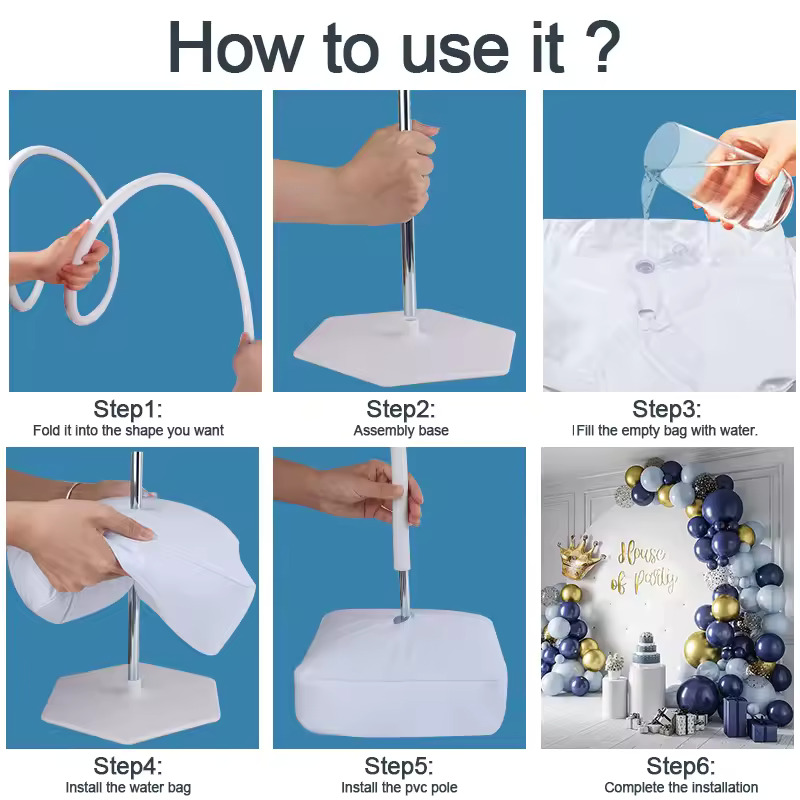 Suportul pentru arcadă este realizat din materiale rezistente și ușor de asamblat, fiind prevăzut cu o bază stabilă care poate fi umplută cu apă sau nisip pentru un plus de fixare. Bara flexibilă permite modelarea în diferite forme, astfel încât să obții un decor personalizat în funcție de spațiu și tematica evenimentului.