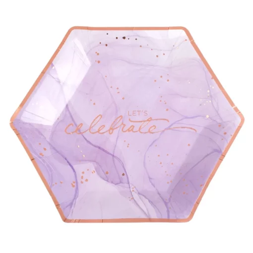 Farfurii Hexagonale Elegante Let's Celebrate Lila Marble Gold