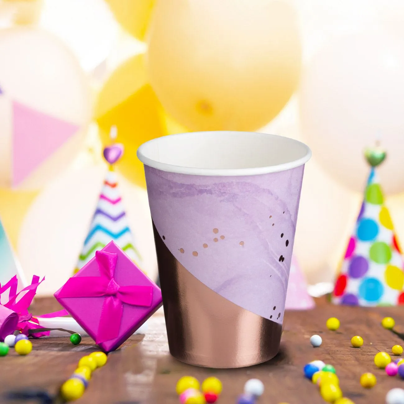 Set 6 Pahare Petrecere Aniversare Lila Marble Gold