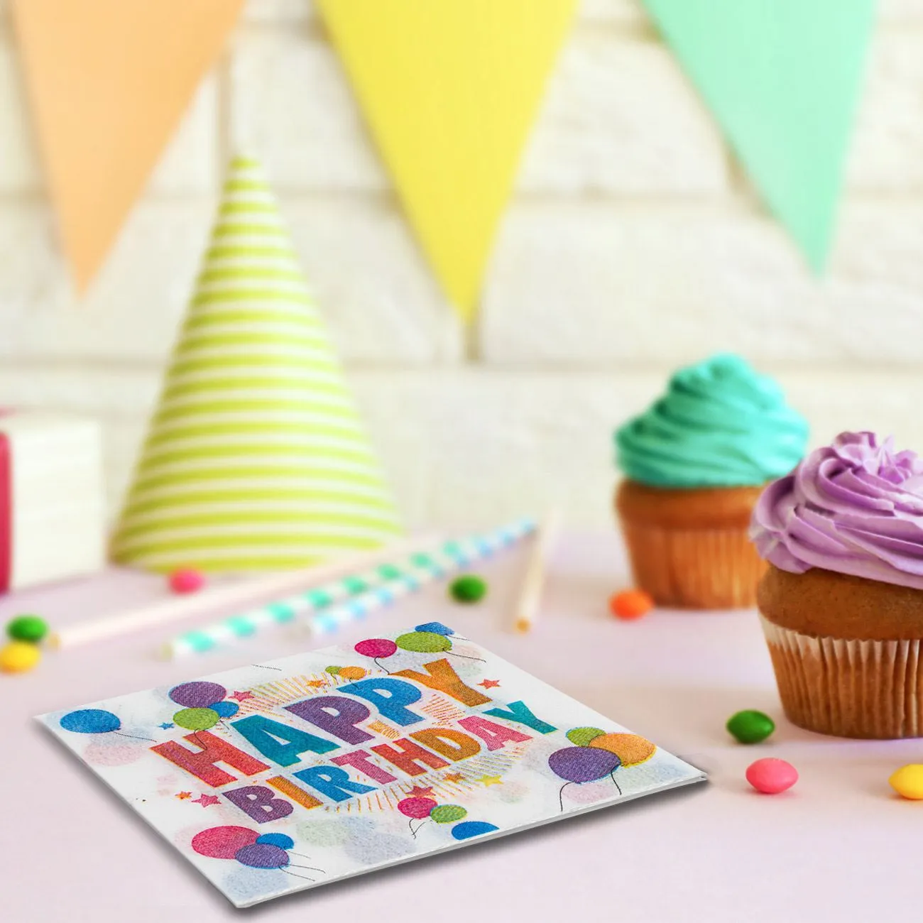 Imprimeul este realizat cu cerneală pe bază de apă, non-toxică, asigurând că produsul este potrivit și în prezența copiilor. Finisajul simplu, de un strat, face aceste șervețele ușor de folosit și aranjat pe masă — perfecte pentru decorurile tematice „Happy Birthday”, accesorii colorate sau culori mixte.