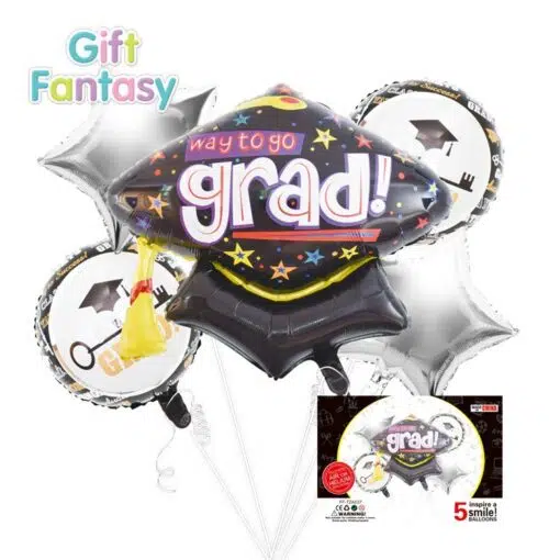 – 2 baloane rotunde cu imprimeuri de felicitare a absolvirii